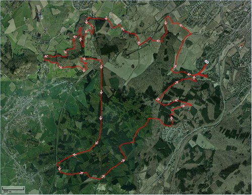 Deze keer liep ik vrij ver naar het zuiden en bijna aan het einde voordat ik even uit het bos zou lopen, sloeg ik weer af richting Duitsland. Ik wist al ongeveer waar ik uit zou komen en dat klopte. De kilometers tikten rustig voort en ik was verrast hoe makkelijk het ging, zeker na eergisteren toen het zo moeizaam ging allemaal.