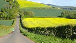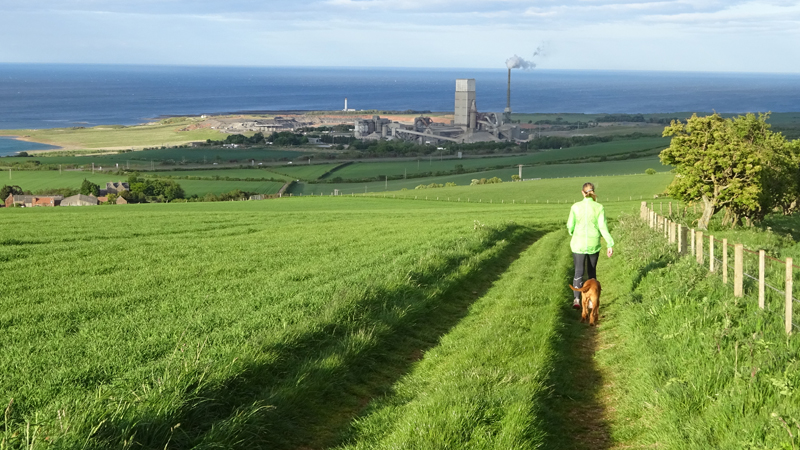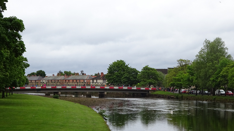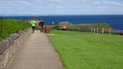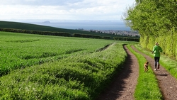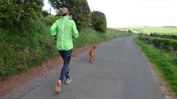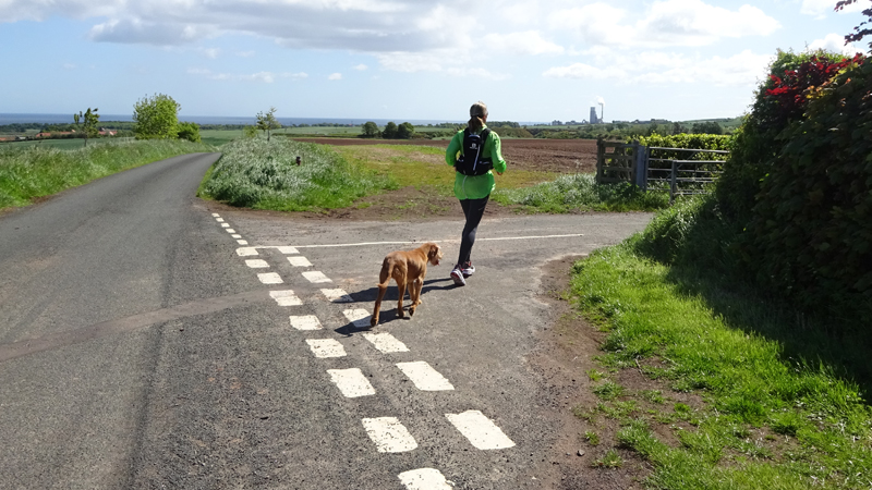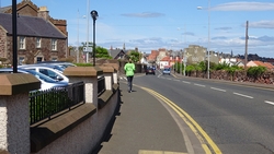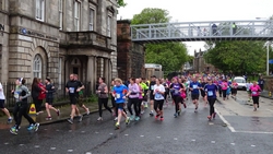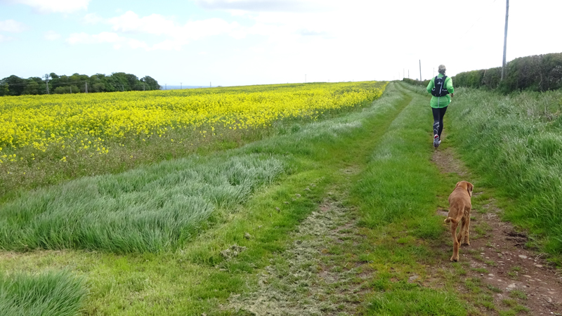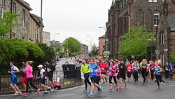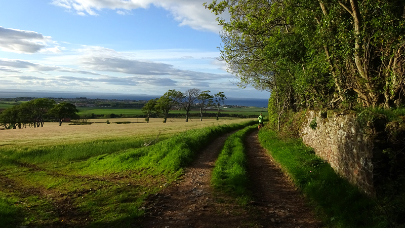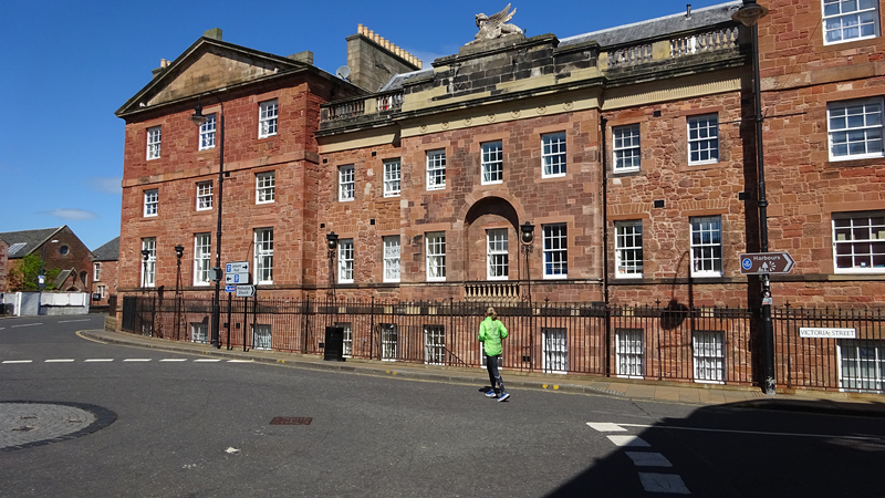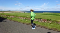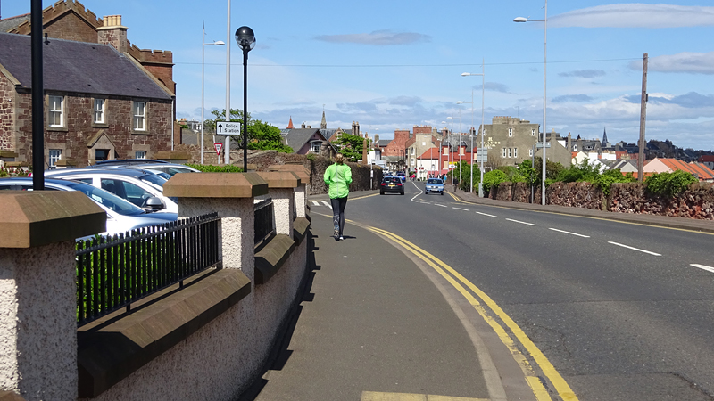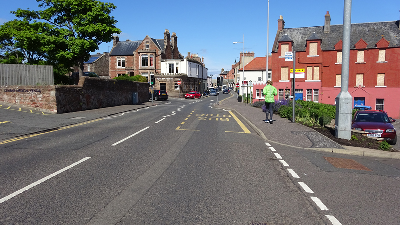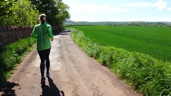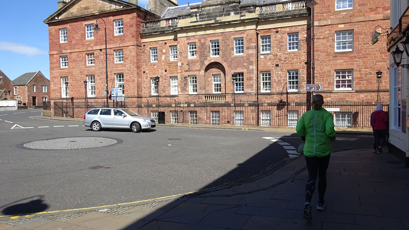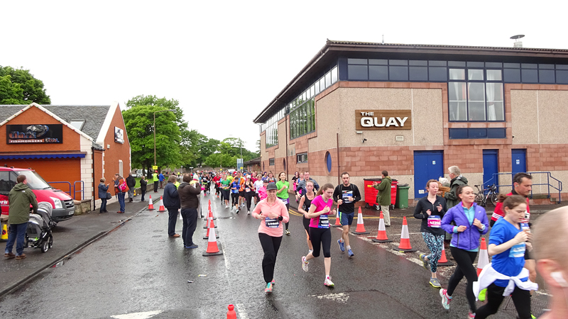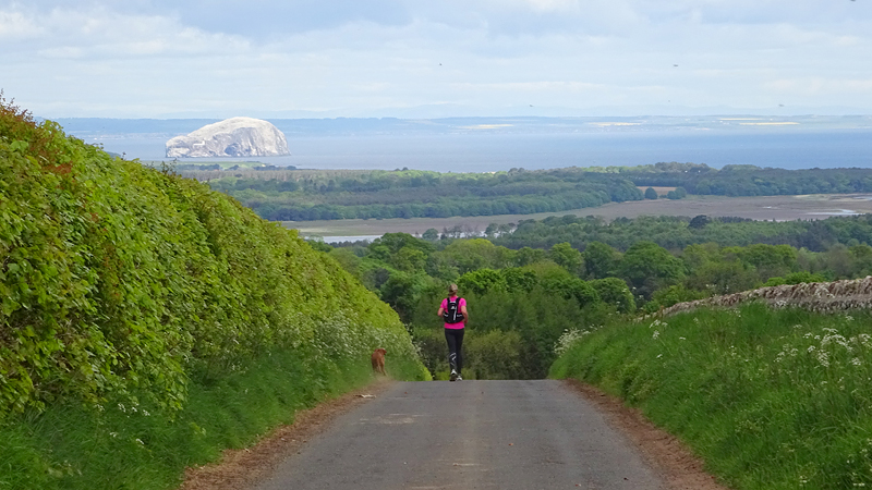 Ik wist dat Musselburgh racecourse nu al snel dichterbij zou komen. Op 15 km langs de racecourse, dan met 16 km bij de rotonde Musselburgh weer uit en dan het heen en weertje dan in 2012 nog zo lastig was. Met 12 km wurm ik mijn softflaskje uit de spibelt tijdens het lopen. Ik raak wel even uit mijn ritme maar ik heb het snel op en ben daarna weer snel in het ritme. Ik kan inmiddels wat beter cadans vasthouden terwijl ik andere dingen aan het doen ben. Toch maak ik een rekenfout, want ik reken met 6 min/km en reken door met een finishtijd van 2.06 terwijl dat niet klopt. De route is 21.22 km en die 220 mtr kost dus meer dan een minuut. Eigenlijk stom, want ik had met 6 min/km moeten rekenen met een basis finish tijd van 2.07.15 ongeveer. Mijn PB is 2.08.29 dus ik kon maar 75 seconden verliezen op het hele stuk. Maar goed… voorlopig liep ik in ieder geval nog mooi vlak en niet zoals in 2012 waar ik van 5.30 min/km over de eerste 5 km al snel wegzakte en uiteindelijk zelfs op 6.35 min/km zou gaan lopen in het vierde blok (!). Nu ging het veel beter dus ik had nog steeds goede hoop op een mooie tijd die nog niet eens moeilijk te halen zou zijn. Omdat dit weer de eerste keer was dat ik zoiets deed, was mijn eerste doel nu mooi vlak te lopen op een redelijk goede tijd. Zou het gaan lukken? Ik loop verder en al snel klinkt het 15 km signaal op mijn horloge. Ik loop door Musselburgh langs de racecourse.