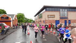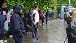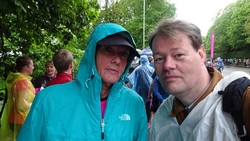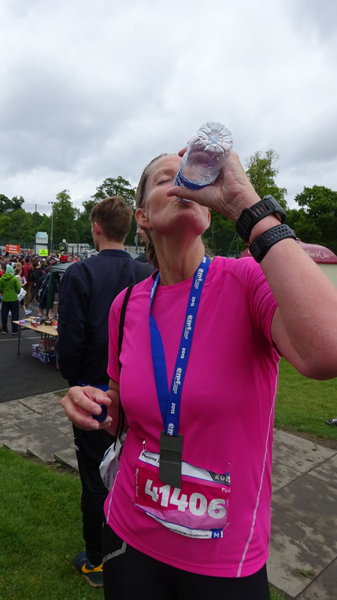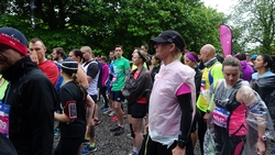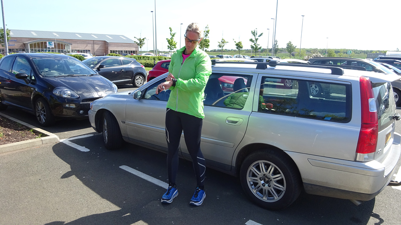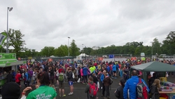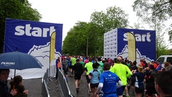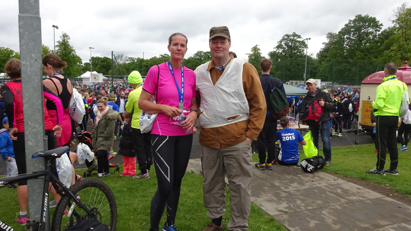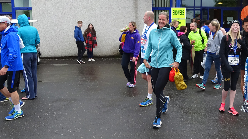 Dit jaar zie ik S. meteen staan bij de finish. Dat is fijn want dan kan ik mijn kleren pakken en me even snel gaan omkleden. Mijn nieuwe Lafuma softshell zit heerlijk ondanks mijn vochtige armen. Het is namelijk weer bloedheet in de kleedkamers. Maar ik ben weer lekker warm en aangekleed. S. is gelukkig niet nat geworden onderweg. We hadden anders al bedacht dat we eventueel bij de grote Tesco in de buurt zouden kunnen omkleden als het zou regenen. We moesten immers eerst nog even naar de auto lopen nu.