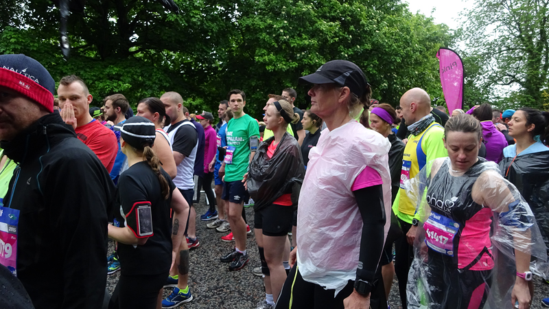Even snel bij een mooi hotel op een lekker warm toilet plassen en daarna naar de start. Het regende zachtjes maar de wind viel erg mee. Stom genoeg hadden we geen ponchos meegenomen maar ik had wel mijn dunne waterdichte broek aan en een regenjack. Voor de run had ik mijn lange tight aan, een korte mouwen thermo en een shirtje. Voor het begin de dunne sleeves en een petje vanwege de regen. De pet en de sleeves bleken toch veel te heet vanaf de eerste meter overigens!