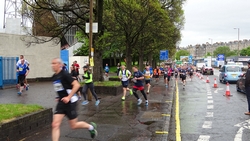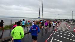 We waren niet extreem vroeg en hoefden dus niet al te lang te wachten op Regent Road. Mijn startvak was daar vrij vooraan dus dat was ook prettig. Om 8.05 ging de eerste wave van start en om 8.10 ging ik dan over de start streep. Er was omgeroepen dat Regent Road erg slippery was en dat klopte ook. Het zorgde ervoor dat ik netjes liep en vooral niet te snel van start ging. In 2012 scheurde ik de eerst 5 km weg met 5.30 min/km wat ik dus totaal niet heb volgehouden. Nu bleef ik rond de 6 min/km lopen en dat zou ook al prachtig zijn als ik dat zou kunnen volhouden met een continue loop.