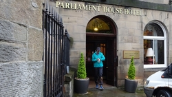 De auto konden we prima kwijt bij het sports centre in musselburgh. Overigens stond bij terugkomst een medewerker iedereen weer weg te sturen want ze wilden natuurlijk alleen members daar hebben. Maar wij hadden een fijne plek niet te ver van de finish. Daarna gauw met de taxi richting centrum Edinburgh waar D. ons afzette en verder geld ging verdienen met andere lopers.