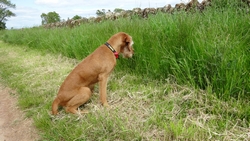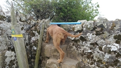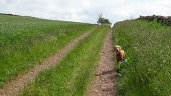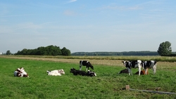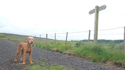 Dat was toch wel weer leuk. Ik eet mijn kaasje op dat inmiddels op smeerkaas lijkt door de warmte en we gaan weer verder. Vandaag valt me een beetje zwaar. Misschien doordat ik verkeerd uitkwam qua route, ik weet het niet. Maar het loopt niet gemakkelijk en ik ben blij als ik een dame op een prachtige Arabier tegenkom waar ik een half uur een praatje mee maak. Ondertussen doet waf een dutje en staat het paard ook op drie benen te soezen en laat zich lekker aaien.