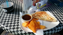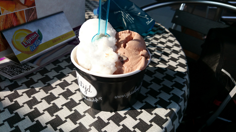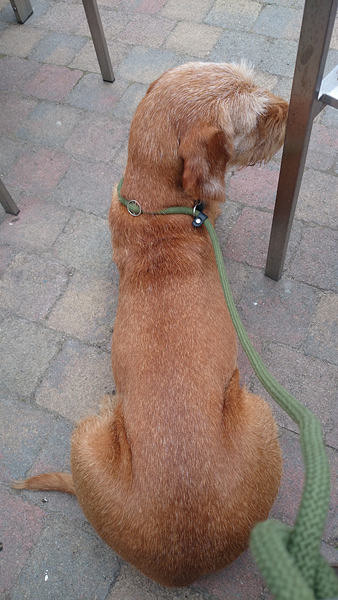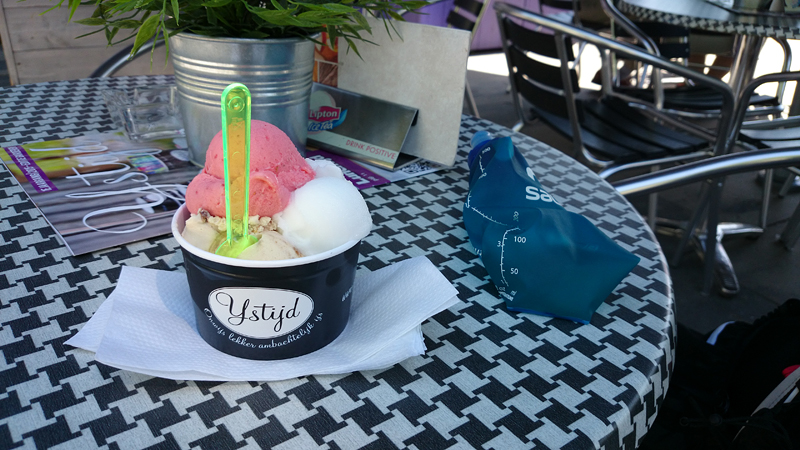 Daarna gaan we weer verder op pad en ik neem weer de omweg over Garderen dorp en ehm.. de ijssalon voor een ijsje en een tosti. Niet zo origineel en helemaal niet passend in een goed verantwoord loopdieet maar wel erg lekker en zeker op een dag als vandaag dus ik laat het me lekker smaken. Net als ik van mijn tosti zit te genieten kotst woeffie op het terras. Lege maag plus grasjes en een raar besje gegeten en dan krijg je dat.