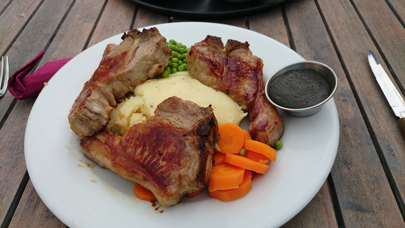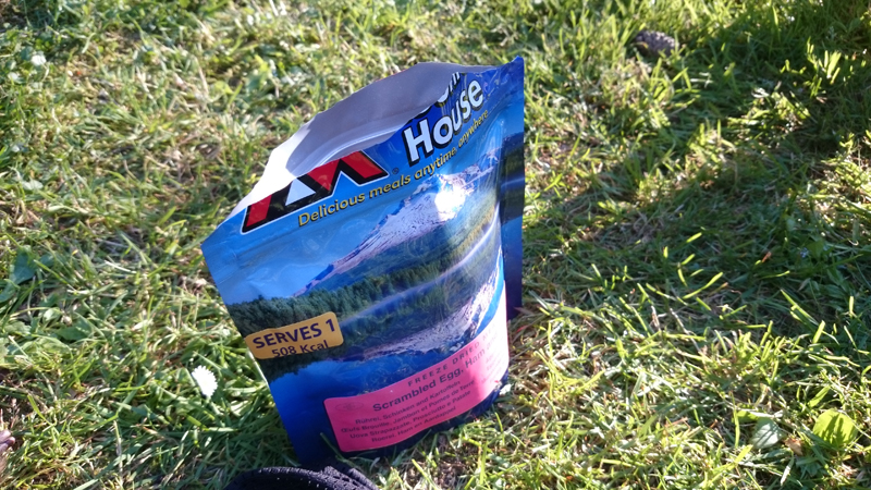 In de avond ga ik weer met mijn buurvrouw samen eten en aangezien zij een omelet bij zich heeft met champignons, besluiten we die te delen en mijn trekkersmaaltijd van scrambled eggs ook te delen. Dat wil ze wel eens proberen. Ik ook, want deze kende ik nog niet maar ik weet dat de farmers omelet van Adventure Foods niet te vreten was. Deze maaltijd blijkt prima eetbaar hoewel de stukjes aardappel soms wat taai of hard zijn. maar de smaak is OK en het is een gigantische hoeveelheid. Ik heb er nog twee dus die gaan wel op de komende trip.