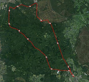 We namen dezelfde route als gisteren en ik zou wel zien hoe lang het lusje eventueel aan het einde vandaag zou worden. Eerst maar eens de 20 km ronde naar de schaapskooi en terug naar garderen. Ik was redelijk snel weer bij de schaapskooi en dat was prettig want daar zou ik water bij kunnen tanken voor woef en zou ik zelf wat kunnen drinken. Plakje cake zou ik ook wel willen want gisteren had ik eigenlijk heel weinig gegeten uiteindelijk. Maar helaas bleek de schaapskooi nog dicht, maar was er wel iemand zo aardig om water voor woef te gaan halen. Zij was dus goed verzorgd!