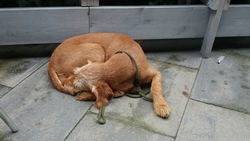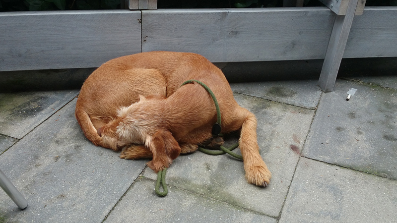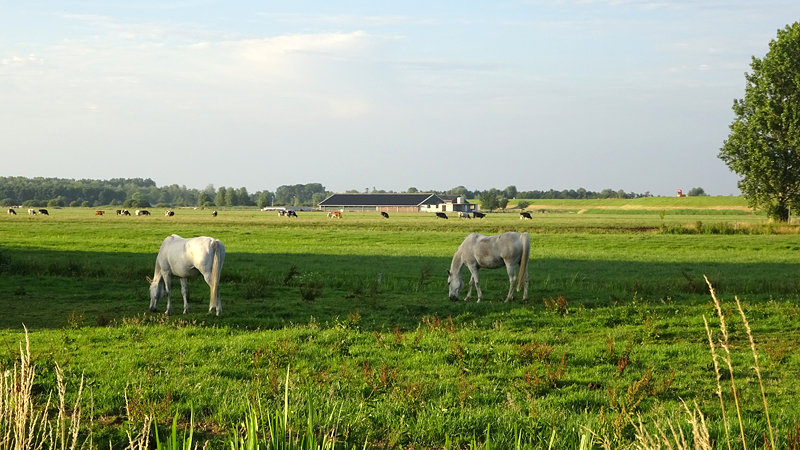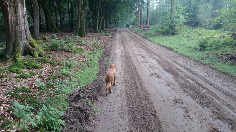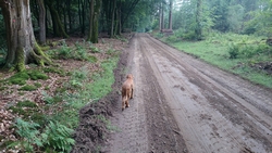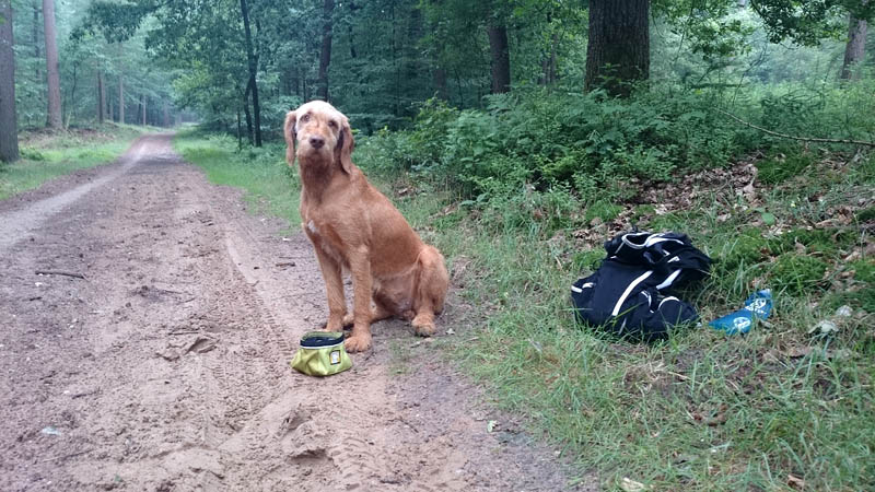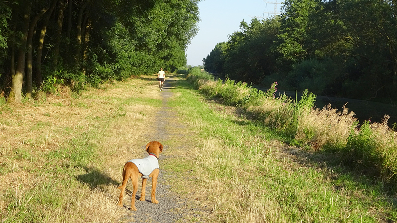 Het is eeuwen geleden dat ik drie dagen achter elkaar niet gelopen heb. Maar het kwam er gewoon niet van eigenlijk. Woensdag liep ik voor het laatst, vrijdag kwam het er niet van en zaterdag was ik even en route. Geeft niets, een beetje extra rust is ook nooit weg. Maar vandaag stond er weer een lange run op het programma. Die knipte ik in twee delen. Het was vanmorgen prima weer, een beetje bewolkt weinig wind en droog. Ik verwachtte wel wat spetters gezien de voorspellingen maar dat kan de pret niet drukken. om klokslag 8 uur startten we vanaf de parkeerplaats. S. op de fiets en woef ook helemaal happy. Het is nog redelijk rustig. Gek idee dat we twee weken geleden al onze ronde gedaan hadden om 8 uur toen het nog zo warm was!