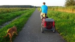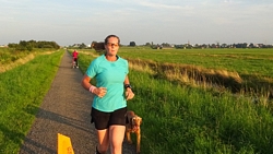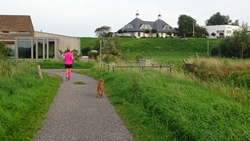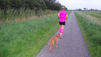 Ik loop door en erger me aan het schuin lopende fietspad. Erger dan ooit! Ik heb ook ineens de wind tegen. De zon is weg maar er is wind gekomen en die waait vrolijk in mijn gezicht. Mijn pet is dus nu veel te heet. Die had ik opgezet vanwege de zon aan het einde van de eerste lap maar is dus nu alleen maar warm en vervelend. Ben ik er al?