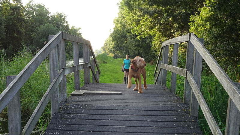 Gisteren was het echt niet te harden. Hoge temperatuur en een warme dikke kleffe lucht. Echt niets aan. Vannacht heeft het heel erg geregend en ook was er onweer maar dat heeft totaal geen verkoeling gebracht helaas. Vanmorgen dan maar redelijk vroeg op pad gegaan. Hoewel ik twijfelde, koos ik toch voor het rondje met de pontjes langs de hele IJssel voor vandaag. Nadeel van die route is dat je nergens meer terug kunt of af kunt snijden. Als je eenmaal over bent gevaren, dan moet je doorlopen tot Gouderak om weer met de andere pont over te steken naar Moordrecht en vanaf daar weer via Nieuwerkerk terug te lopen. Dat is dus minder prettig dan lekker slingerend door het natuurgebied te lopen waarbij je elke afstand kunt kiezen die je wilt en ook eventueel rekening kunt houden met wind en/of zon. Maar ik had gekozen voor die route en ik dacht dat het wel zou gaan. Woef was natuurlijk thuis met dit rare weer. Niets aan voor haar.