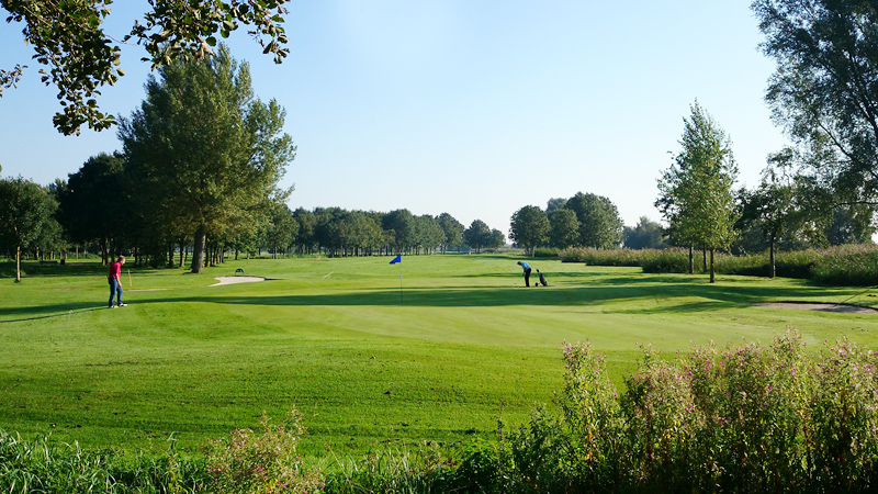 Bij de cooldown maak ik nog een foto van de golfbaan en doe wat rekoefeningen met mijn armen,