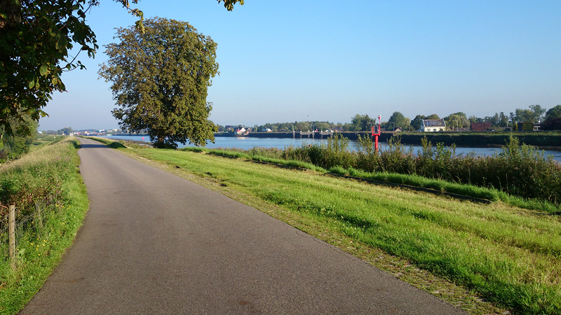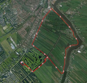 Ik loop meteen naar Hitland Noord en sla de lange arm in richting de dijk. Ik ben niet van plan om over de dijk te lopen maar helaas word ik ineens achterna gezeten door een enge hond waar ik me kapot van schrik. Ik besluit dus aan het einde van de arm de dijk op te lopen om niet op de terugweg weer langs die enge hond te hoeven lopen. Zo kom ik er ook natuurlijk en het loopt niet eens vervelend.