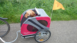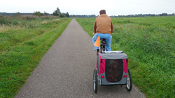 Vandaag best actief verder geweest in de tuin. Dat is ook niet echt licht werk maar ik heb wel zin in een ommetje. S. heeft de kar al op de andere fiets gemonteerd en ik zal hem zien bij de parkeerplaats van hitland. Daar wandelen we even een stukje met woef met haar schoentje aan en daarna gaat ze in de kar.