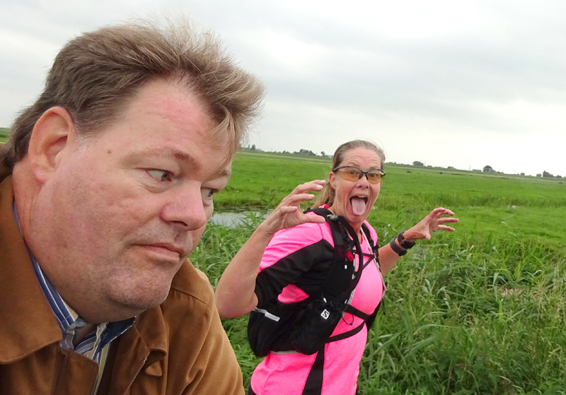 Helemaal niet ontevreden dus. Onderweg probeert S. nog een foto te maken terwijl ik naast hem ren en dat zie ik natuurlijk meteen.