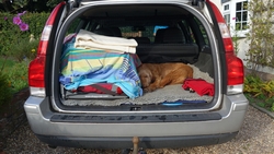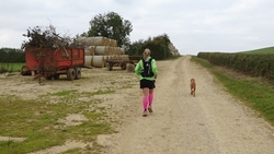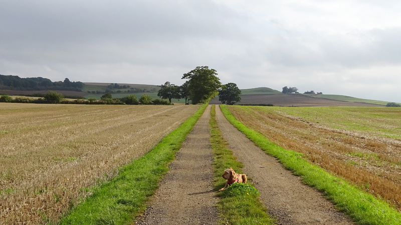 Vandaag alweer de laatste dag hier in Lincolnshire. Vanavond stappen we op de boot en dan zit het er weer op. Ik heb 12 dagen achtereen gelopen, 1 rustdag gehad vanwege regen en het eerste weekend ook gelopen. Totaal ben ik dus 14 keer op pad geweest, waarvan 12 keer met S. en woef (deels in de kar). Het is uiteindelijk wel goed gegaan met het pootje, ook al heeft ze de hele vakantie een schoentje gedragen. Maar dat mocht de pret niet drukken. Vandaag is het rondje echt voor woef, zodat ze lekker moe en goed uitgelaten de boot op kan vanavond. We kijken dus even serieus op de kaart welke route voor haar te doen is zonder dat de kar mee hoeft en wat ook nog een beetje leuk voor ons is. We kiezen uiteindelijk voor de start bij Platts Lane waar ik in het eerste weekend ook gelopen heb, gevolgd door een rondje Tetford en dan weer terug over Platts Lane. Dat is wel voldoende en daarna kunnen we dan een hapje eten in Belchford. Zo gezegd zo gedaan en als de auto is ingepakt (terwijl woef er vast in is gaan liggen zodat we haar niet zullen vergeten), gaan we op pad. Het is niet meer zo zonnig als alle afgelopen dagen. Bewolkt en een beetje somber. Wat hebben we enorm geboft met het weer! Twee weken (minus 1 dag) prachtig zonnig weer, zelfs zo lekker dat we de meeste dagen buiten in de tuin gegeten hebben en lekker daarna hebben kunnen luieren in het zonnetje. Heerlijk!