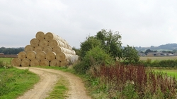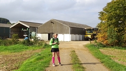 Het is vreemd om weg te rijden bij het huisje maar het is niet anders. We rijden naar Belchford, even een stukje door en we parkeren bij de ingang van Platts Lane bij de grote farm daar. We maken even een drone video van ons samen vanuit lucht en lopen daarna over het erf richting het pad. Wat een gigantische wagens staan daar toch voor op het land!