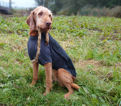 Omdat het zachtjes regende en woef natuurlijk net haar dikke bontjas kwijt was, had ik de cloudchaser bij me. Dat vond ze wel prima duidelijk!