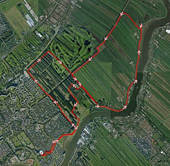 * lap 11 km – pace 7.22 min/km – HF 130 (139 op bij de dijk) – cadans 172 – (1-2-3-2-2)