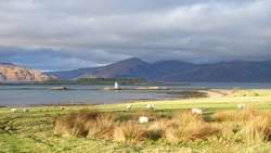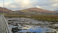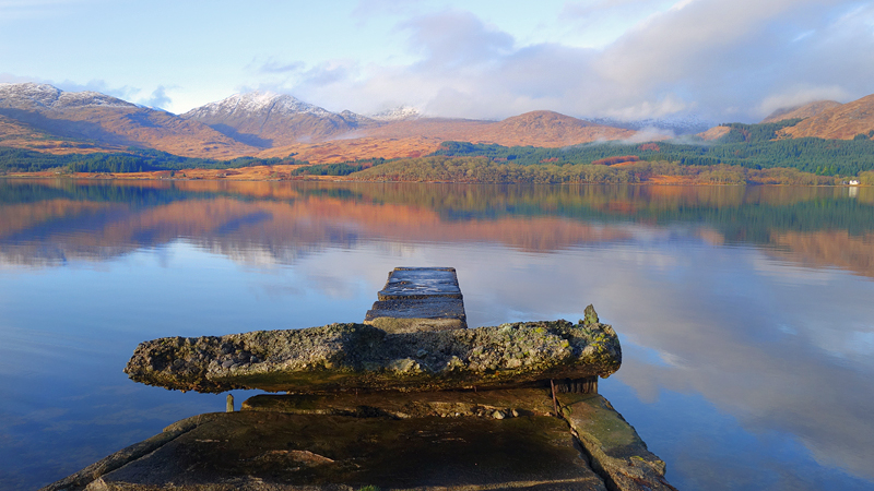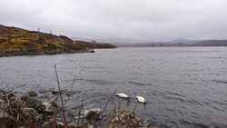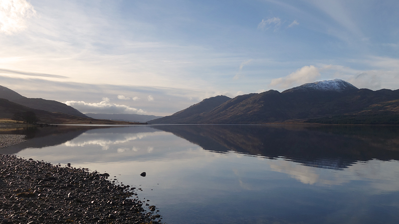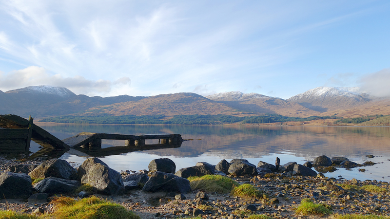 Tsja, beetje veel foto’s maar ik vind het nog steeds een hele bijzondere plek. Het is heel stil je hoort het kabbelen van het water en verder niks. Aan de overkant zie je het huisje bij de pier aan de andere kant waar we al vaker zijn geweest. En dan ineens zie ik iets zwemmen. Is het een otter of een zeehond? Ik weet het niet, ik kan het niet goed zien helaas. Later zie ik het dier nog een keer en ik denk nu dat het een otter is omdat het klein is en de bewegingen lijken op die van een otter. Hoe het ook zij, het is geweldig om in dat spiegelgladde water zoiets te zien zwemmen. Otter of zeehond, allebei leuk.
