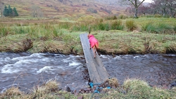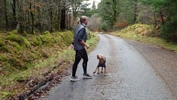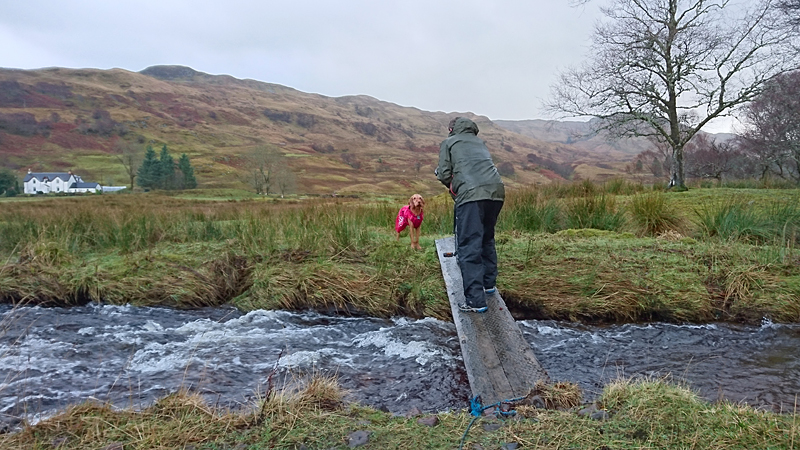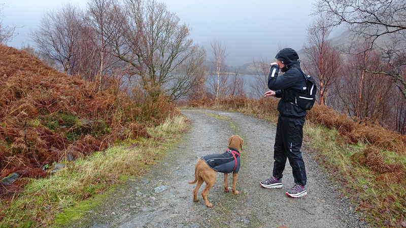 Ik zie al dat ik eigenlijk niet veel verder kom. Mijn schoenen en sokken zijn doorweekt en het water is natuurlijk gewoon ijskoud. Woef loopt stoicijns door en doet alsof ze niks voelt. Wat een lieverd is het toch.