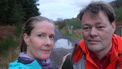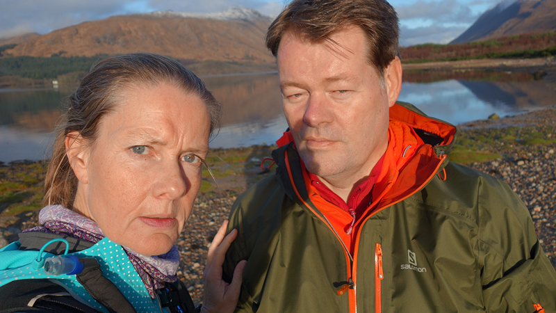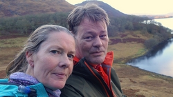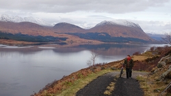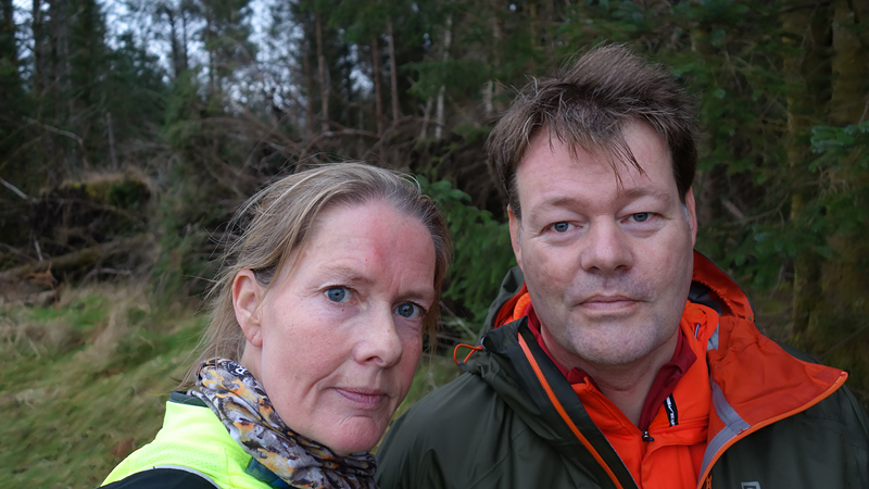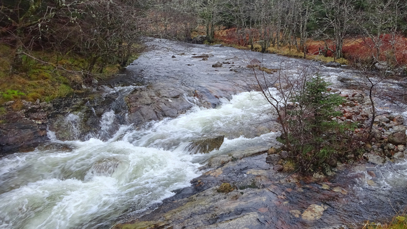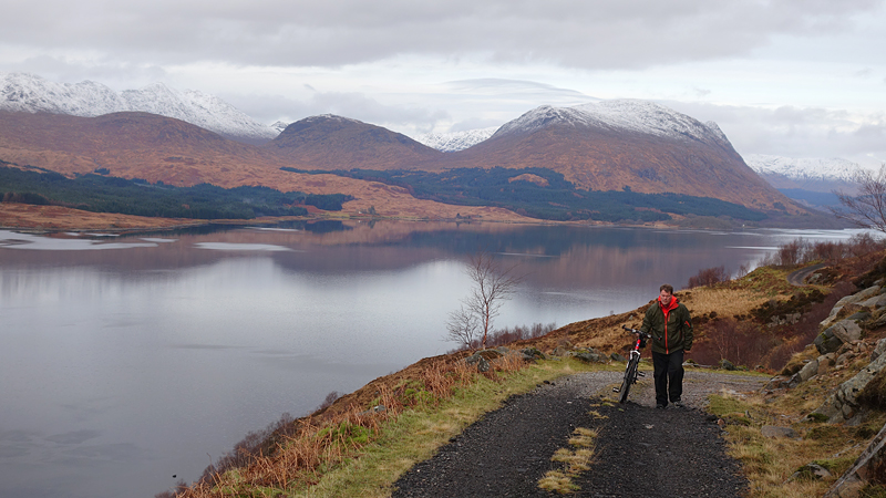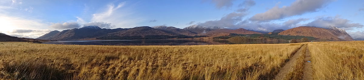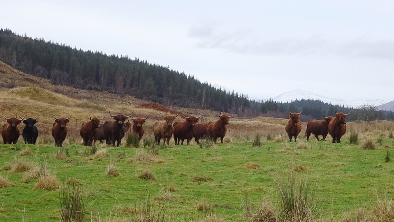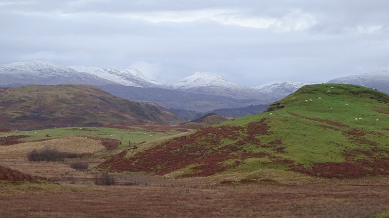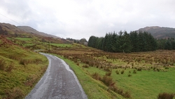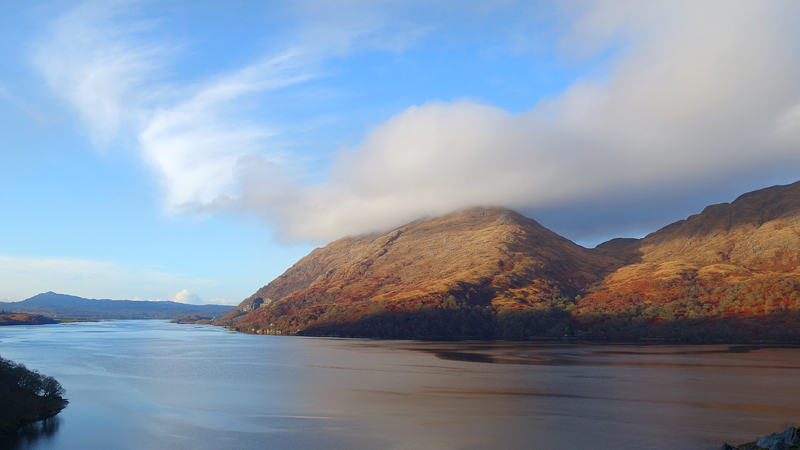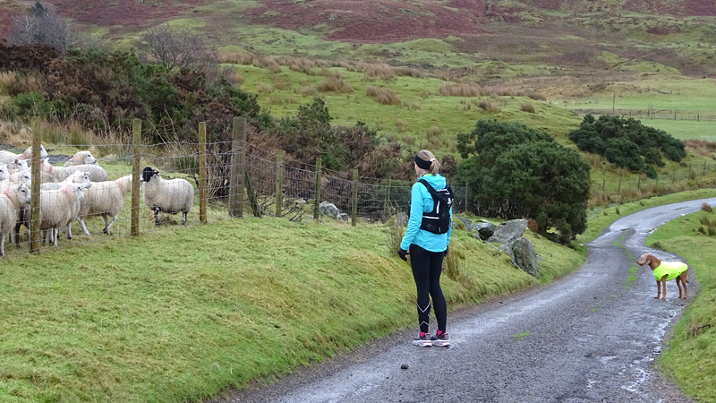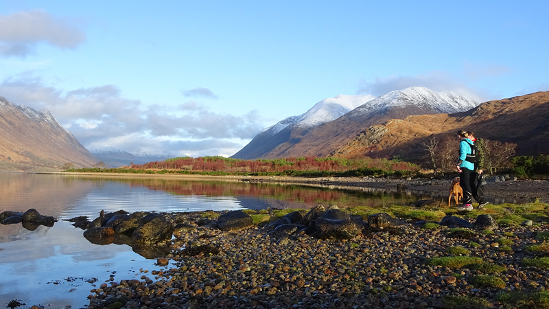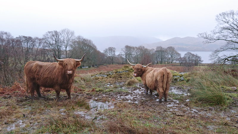 Vanaf nu lopen we een beetje door. Het fraaie licht is toch weg en foto’s hebben we genoeg… Maar het klimmen en dalen valt niet echt mee. Het loopt prima maar op de fiets is het ook zwaar natuurlijk. Toch hebben we gelukkig wel wat herkenningspunten onderweg waardoor het allemaal niet zo ver lijkt… De schapen, het huisje en dan de plek waar het paardje los liep. Daar praten we eventjes met de eigenaresse die net het paard aan het voeren is en ze vertelt dat ze eigenlijk wel weg wil daar. Ze noemt het ‘met de beauty komt het beast’…. om daar te wonen moet je voor lief nemen dat je steeds dat hele gebied in moet rijden over een weg die eigenlijk geen weg is (met een slagboom ook nog eens want het is helemaal geen weg). En als vrouw alleen is het ook te zwaar (geworden). Ze wil dus vertrekken en daar kunnen we ons van alles bij voorstellen. Zo met de kano aankomen en een nachtje slapen op de oever lijkt me geweldig maar voor meer dan een nacht zou het niks voor ons zijn denk ik, hoewel ik zowel van natuur als van stilte hou. Maar er zijn grenzen…..We nemen afscheid en lopen weer verder.