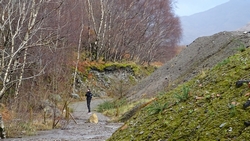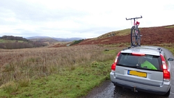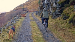 Het begin is niet alleen erg steil maar heeft ook nogal scherpe en lastige stenen. Aangezien we niet meteen in de eerste kilometer lek willen rijden, neemt S. de fiets eerst maar mee aan de hand. Uiteindelijk start ik alvast want de fiets is toch sneller dan ik natuurlijk.
