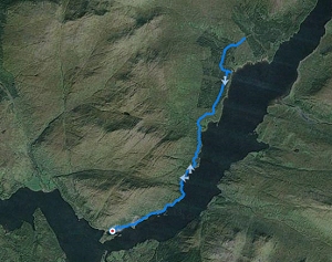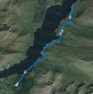 Vorig jaar liep ik deze route op eerste kerstdag. Dat verraste me, want blijkbaar heb ik S. toen in het huisje achtergelaten. Niet leuk maar dat had vast te maken met het weer. Toen had ik mooi weer met fraaie mistflarden rond de bergen en je hebt voor deze route ook wel een beetje helder weer nodig en als het even kan ook zonder wind. Ik liep eens deze route (deels) met een harde wind en dat is geen feest want je hebt alle energie al nodig voor de route zelf zonder ook nog eens van je sokken geblazen te worden.