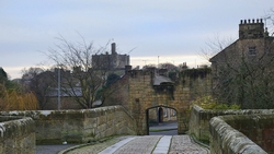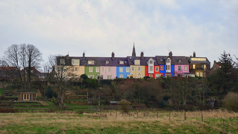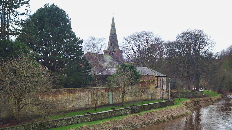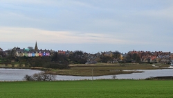 Ik loop de heuvel op naar de parkeerplaats en loop door richting Warkworth. Kom maar op met dat kasteel. Ik zie het in de verte al van bovenaf liggen. Dat ziet er goed uit en lijkt de moeite waard om nog een keer te bezoeken met mooi weer. Op dit moment loop ik alleen even naar beneden langs de weg en zie het dorpje aan de buitenrand. Lijkt leuk. Watertje door het dorpje, kerkje en het kasteel in de verte. Ik ga dit dus bekijken als ik de volgende etappe van het coastal path doe. Dan kan ik parkeren bij die parkeerplaats waar ik net ben langsgelopen en kan vanaf daar verder zuidwaarts lopen. In twee etappes ben ik dan bij Cresswell. Helemaal heen en weer vind ik te ver voor woef nu dus ik zal het in 2 delen knippen.