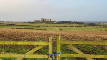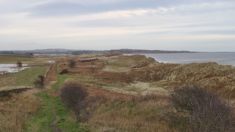 Ik ben nog niet erg onder de indruk van de route eigenlijk. Het was tot nu toe vrij saai. Ik loop nu eerst door een afgrijselijk camping park met die lelijke groene caravans. Echt niet om aan te zien, wat een deprimerende toestand. Daarna langs de golfbaan en eindelijk een stukje langs het water. Ik kijk op de kaart en zie dat ik al bijna bij Warkworth ben. Dat is snel gegaan en ik vermoed dat ik op het 11 km punt ongeveer bij het dorpje zal zijn.