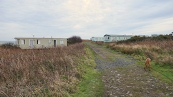 Ik loop verder…. eerst richting het lelijke caravanpark, door de duinen en over de parkeerplaats.