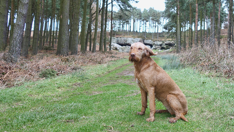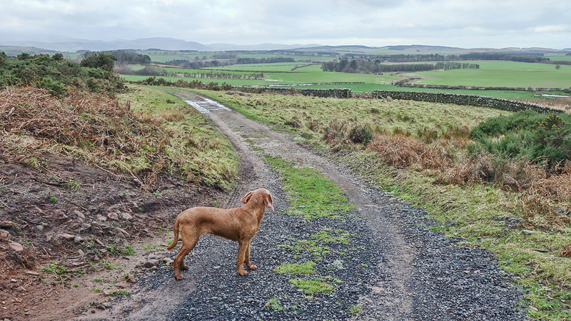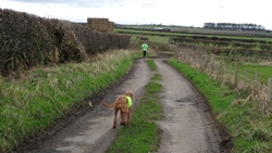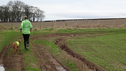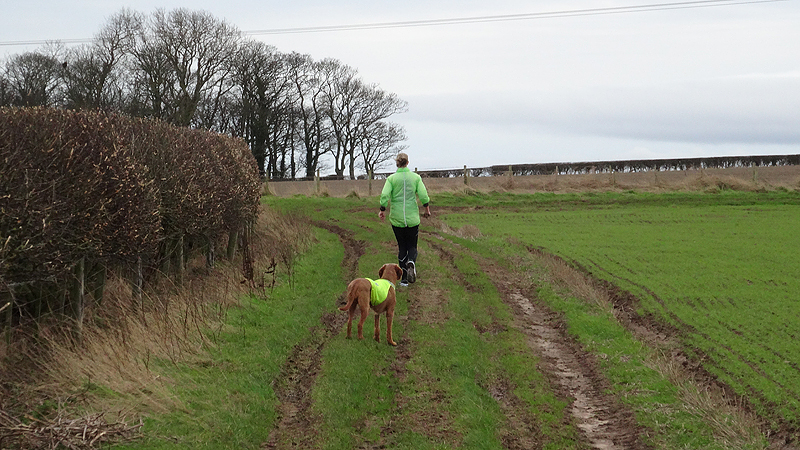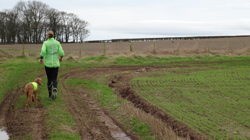 Eindelijk lopen we weer onverhard en is het ook leuker voor woef. Overal liggen dode konijnen dus ik let goed op dat woef geen enkel beest aanraakt. Die zijn vast allemaal ziek!