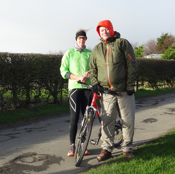 Ik maak nog wat foto’s en loop weer naar boven en pak het pad langs het weiland. Daarna weer over de parkeerplaats en weer naar beneden richting de duinen. Als ik de duinen in wil lopen, kom ik de hikers weer tegen. Die zijn dus nu op hun eindpunt. We kletsen nog even kort en dan vertrek ik weer voor de terugweg. Toch wel opvallend dat ik een stuk sneller ben zo rustig joggend (ondanks het maken van foto’s etc).