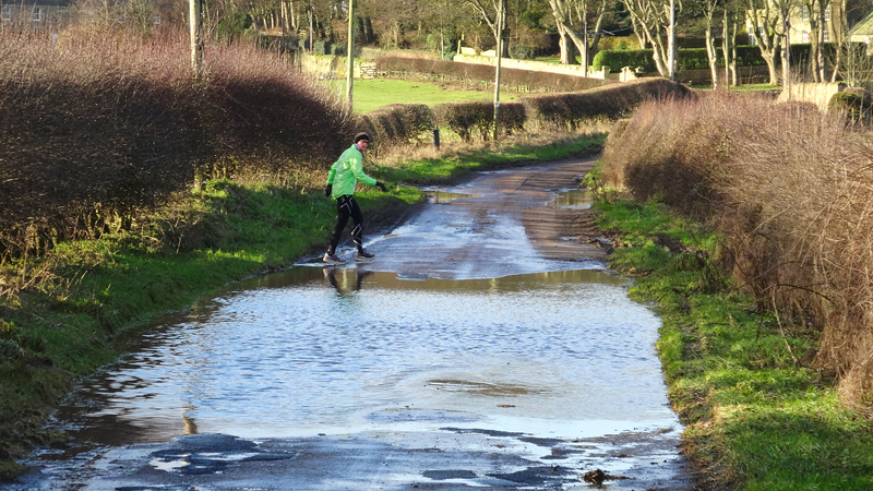 Het eerste stuk is bekend van mijn eerdere parcoursverkenningen voor de ultra en van de ultra zelf. Ik zou nu alleen niet rechtsaf slaan bij de rotonde maar linksaf ergens een veld in.