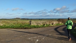 Het is best warm en ik besluit op tijd mijn jasje uit te doen zodat ik alleen met mijn shirt en aeroloftje verder loop. Ik doe wel mijn oorplug in vanwege de wind. Dat loopt een stuk lekkerder!