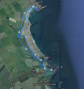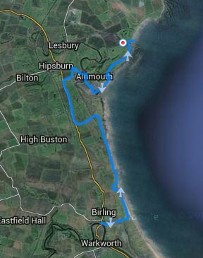 Vandaag ga ik op pad voor een nieuw rondje. Ik was van plan om het rondje Foxton to Hawkill stepping stones te doen, maar ik zag op de kaart dat het Northumberland coastal path niet langs de river Aln loopt naar Alnwick maar afslaat richting zee en dan verder zuidwaarts richting Cresswell als eindpunt. Omdat Warkworth de volgende plaats is vanaf Foxton en daar een kasteel is dat ik nog niet eerder zag, besloot ik dus dat rondje te doen. Heen en weer zou dat ongeveer 20 km zijn dus dat zou goed kunnen als tussendoor rondje. Eergisteren liep ik van Craster naar Foxton dus dit sluit dan mooi aan.