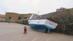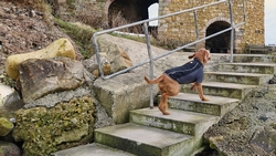 Daarna zijn we echt klaar om te gaan en maken we de hond ook klaar.