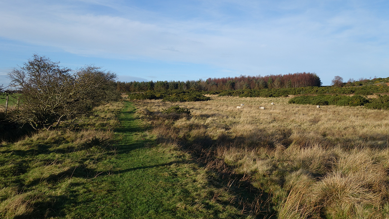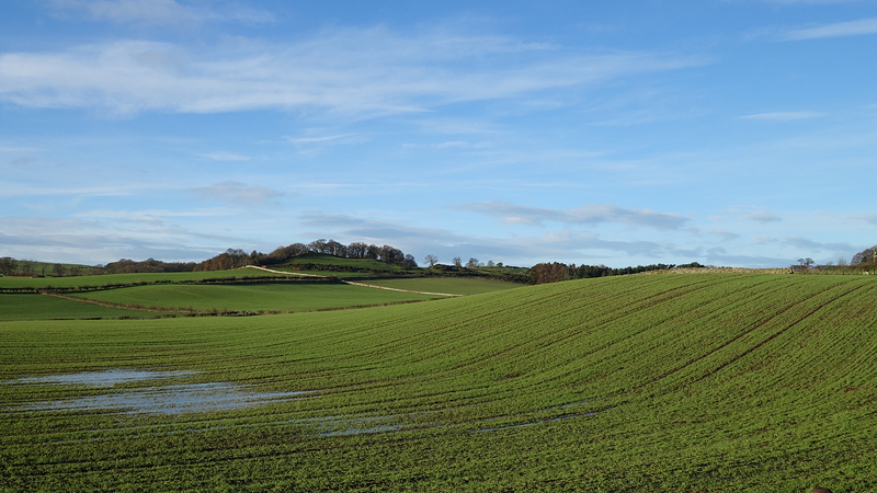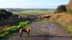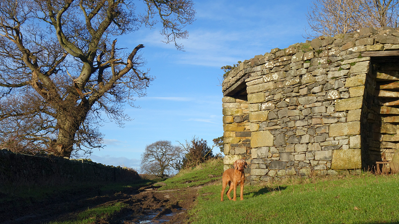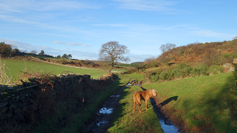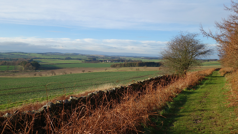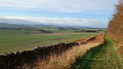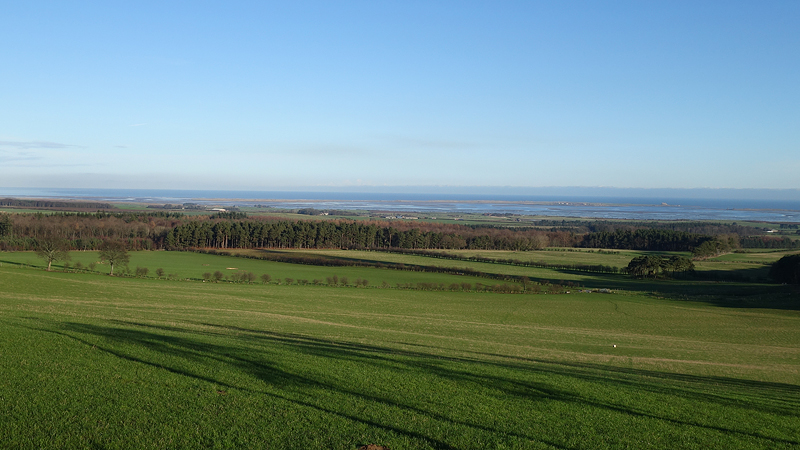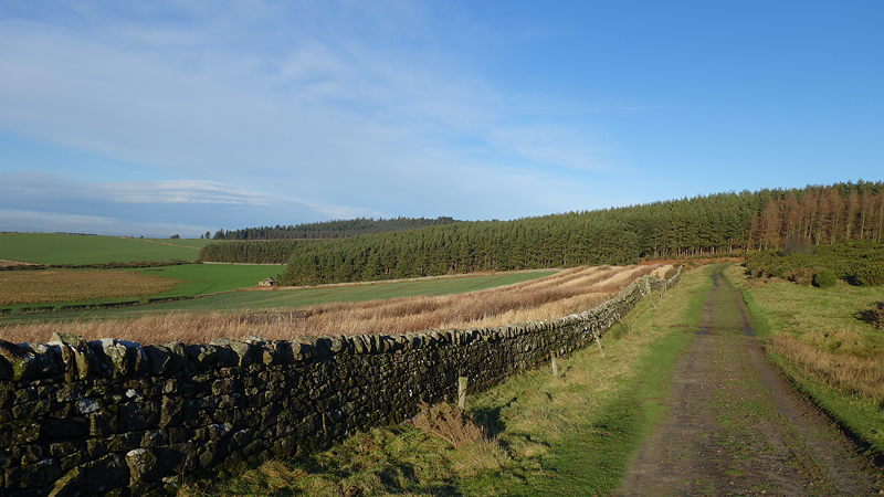 Ik ga door het hek en geniet van het uitzicht hier richting de Cheviots. Het zonnetje schijnt fijn en zo zonder wind is het echt heerlijk ook al is het maar 0 graden.