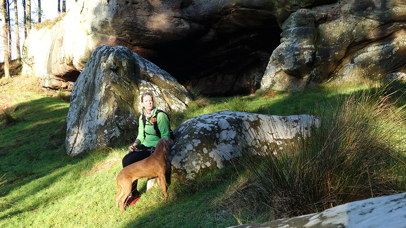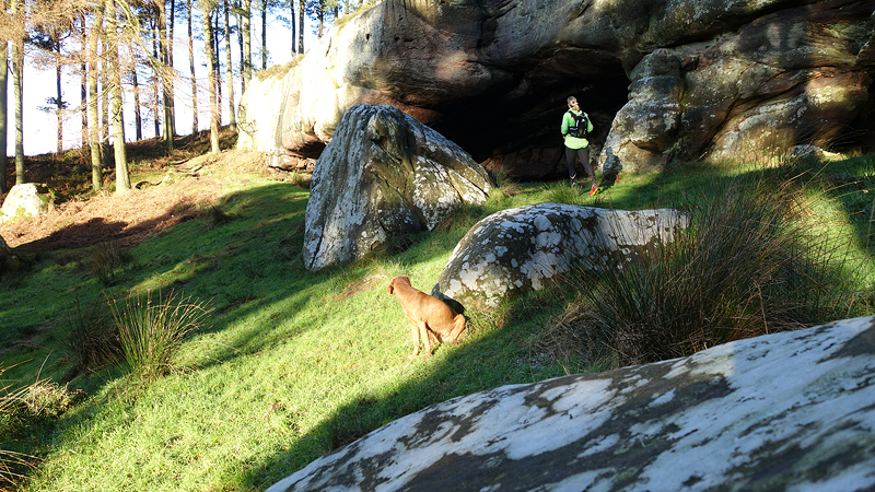 Het bos is ook prima begaanbaar. Eigenlijk geen problemen hier dus als het weer zo blijft, dan kan ik eventueel wel een rondje hier in de buurt verzinnen ook al moet ik dan een van beide kanten op alleen maar heuvelopwaarts. Uiteindelijk kom ik weer in het bos waar ik ben afgeslagen en ga het stukje richting St Cuthberts Cave lopen. Gek idee dat ik in juni de hele St Cuthberts route liep (100 km). Dat was toch echt wel een belevenis die ik niet meer zal vergeten. Samen met woef op avontuur….