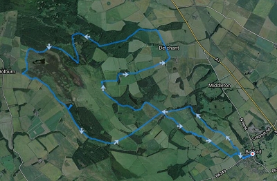 Met een omweg vanwege een ondergelopen weg rijd ik naar Belford en daar parkeer ik de auto. Al snel zijn we op pad voor het rondje dat ik al veel vaker liep. De vorige keer was mijn laatste rondje in juni!