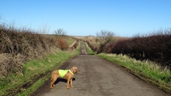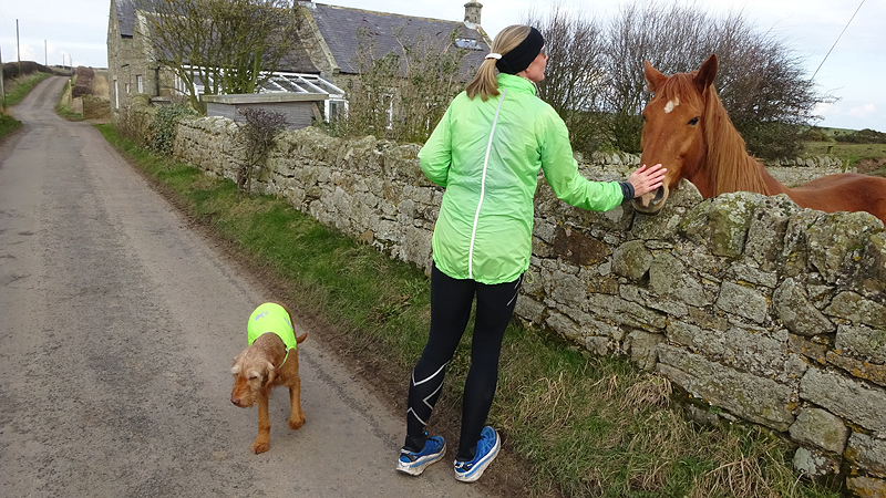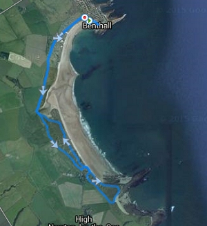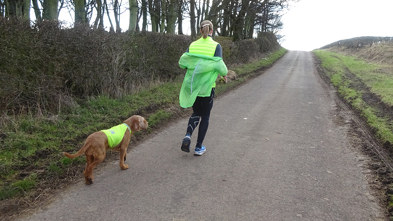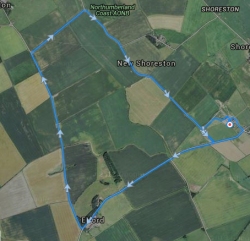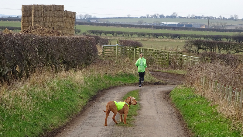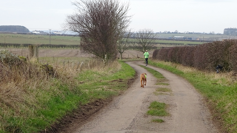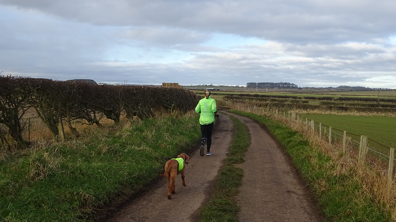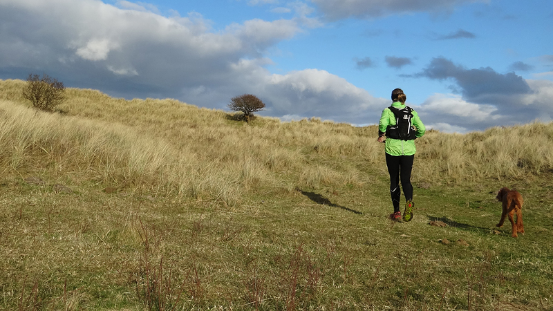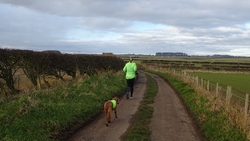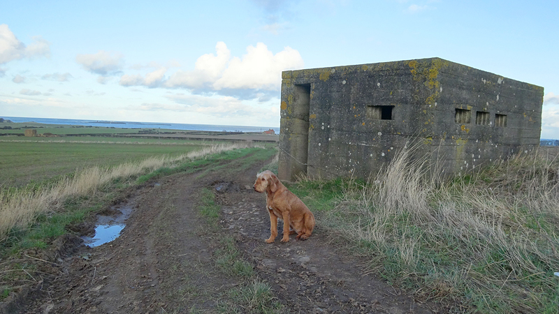 Zo gezegd zo gedaan. Waf en ik gaan om 7.30 op pad voor het eerste rondje. Ik dacht dat dat rondje via Shoreston en de bunker 5 km was, maar dat bleek 6 km te zijn. Ook best, al rekenend onderweg zou ik wel goed uit kunnen komen nam ik aan.