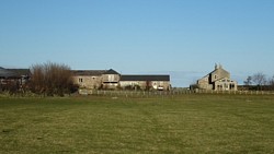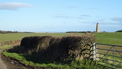 Na Lucker loop ik weer een stukje door richting Spindlestone. Daar ben ik eigenlijk al best snel ook al baal ik een beetje van de wind. Gisteren was er totaal geen wind. Nu het waait, hoor ik de vogels niet en maakt het geruis om mijn hoofd me onrustig. Maar dan zie ik al de weg naar Spindlestone en even later ook de molen die geen molen is maar een opslag met een dovecote blijkt te zijn.