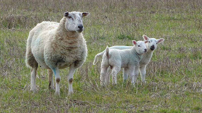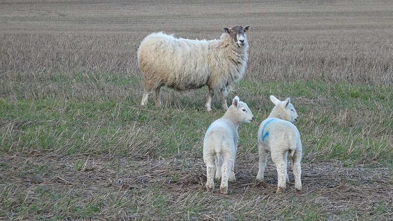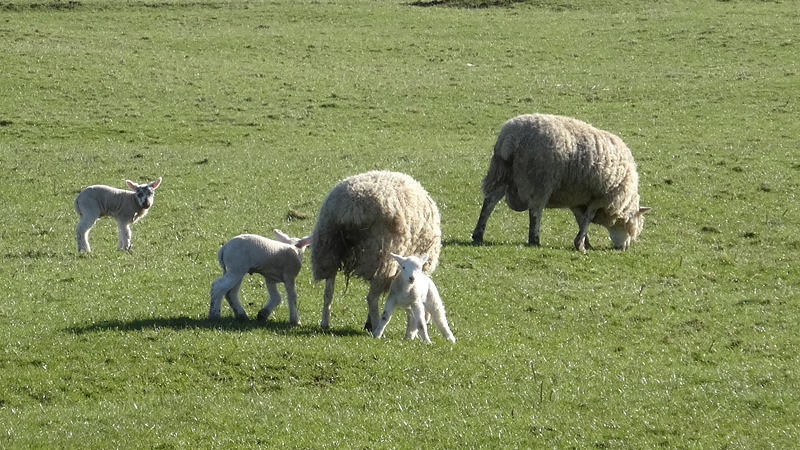 Daarna weer richting een farm waar normaal al vroeg lammetjes staan. De vorige keer stonden ze allemaal veel te ver weg voor een foto, nu staan ze iets dichterbij maar nog wel ver weg.