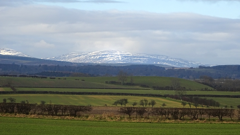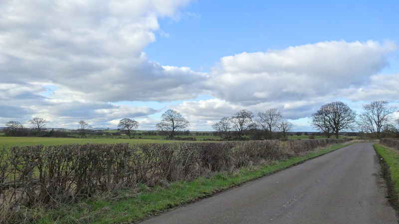 Ik sla rechtsaf naar Swinhoe en loop daar ook weer over de weg. Lang geleden deed ik dit stuk weg eens bedenk ik nu, toen ik verkeerd was gelopen geloof ik. Maar in ieder geval niet in deze richting. Het is best aardig want ik zie besneeuwde bergtoppen voor me en veel schapen. Verder is het op zich vrij saai. Ik kom door een mooi stukje met een natuurgebiedje, loop door Newham en maak nog een slinger die me weer op de weg zal brengen waar ik vanmorgen ook in tegengestelde richting liep. Ik ben benieuwd hoe dat voelt straks, want daar zitten een paar klimmetjes in die ik vast wel zal merken zo aan het einde van de route. Inmiddels is het flink bewolkt geworden en ben ik blij met mijn jackje. Overigens had ik zowel het jack als de aeroloft bij me kunnen hebben als ik niet langs de cottage zou komen, maar het voordeel is nu dat het jackje even kon drogen na het eerste rondje.