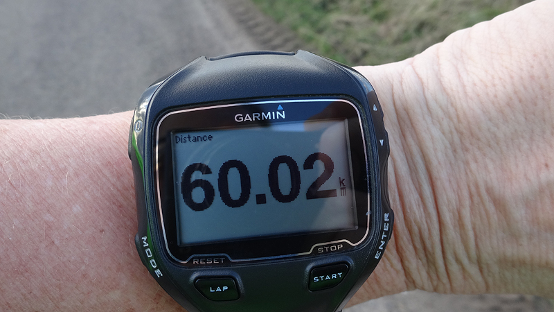 Met 61.60 km in de benen staan we weer voor het huisje. Wat een roteind eigenlijk maar het geheim blijft simpelweg doseren en vooral door blijven lopen.