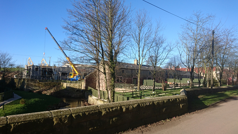 Al mijmerend loop ik Lucker alweer in. Vorige keer verbaasde ik me over de bouwactiviteiten daar en vergat ik helemaal een kiekje te maken. Ik kiekte toen het vredige kerkje, maar er is niks meer over van het dorpje. Dit is wat ze aan het doen zijn daar!