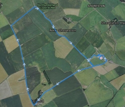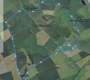 Zo gezegd zo gedaan. Ik sla linksaf en loop over een weg die ik normaal met de auto doe als ik ergens heen rij. Ik ken de weg dus op zich wel maar lopend, ziet het er allemaal anders uit. En wat een stuk tot het einde waar ik rechtsaf sla naar Swinhoe! Nou ja, dat is allemaal in the mind natuurlijk dus niet zo zeuren. Het lopen gaat nog steeds goed. Ik heb mijn stinson lite weer aan en wissel straks dus weer met de trail schoenen. Eigenlijk zit dat wel prima als je dat zo afwisselt. In de cottage nam ik een lekkere beker Nesquick en daarmee doe ik het. Heel af en toe neem ik een dextro tabletje en verder niks.