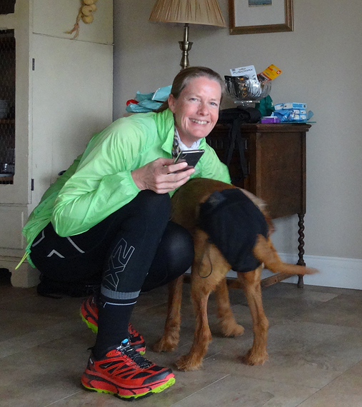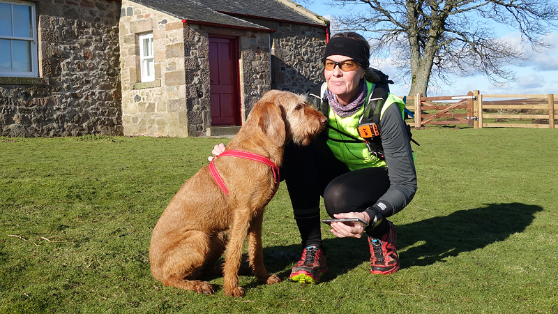 Na ruim 20 km staan we weer bij de auto. Ik trek mijn lekkere warme jas aan en maak woef droog en warm. Zij is helemaal droog onder haar cloudchaser dus dat is prima. Nu op naar huis voor een warme maaltijd!