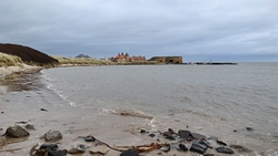 Daarna gauw op pad. Als ik even op het strand wil kijken, ben ik verrast hoe hoog het water nu staat met dit getijde. Normaal kan je gewoon naar de Lime Kilns lopen maar nu totaal niet. Dan maar meteen door naar de duinen.