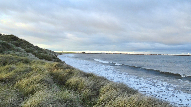 Ik loop net even heuveltje op als ik dat met mezelf aan het overleggen ben. Geen geschikt moment maar ik weet al lang dat ik daarheen ga lopen en zo gebeurt het ook. We hobbelen over het veld verder naar Low Newton en lopen door de duinen richting het strand. Het is nog steeds lente, of eigenlijk zomer.
