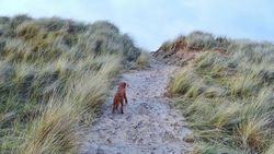 Ik mijd het strand (ook op de terugweg) omdat er teveel honden lopen. Ik ga door de duinen en ook zo weer terug. Zo gezegd zo gedaan en al snel zijn we op pad. Ik kom weinig honden tegen op de heenweg gelukkig.