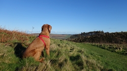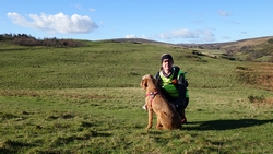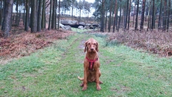 Wat een ravage. Met de kaart in de hand klauter ik over stronken en bomen. Ik ben op een gegeven moment woef kwijt. Soms blijft ze een achter als ik zoiets doe, omdat ik dan vaak wel weer terug kom. Nu zie ik haar, maar zij ziet mij niet. Ze raakt in paniek. Ik besluit niet de fluiten want ik ben als de dood dat ze keihard de verkeerde kant oprent en ik kan niet snel genoeg achter haar aan door die stomme bomen. Ik zwaai en probeer zoveel mogelijk te bewegen zodat ze me kan zien. En ja! Uiteindelijk ziet ze me gelukkig en komt razendsnel naar me toe rennen en rent bijna door me heen van plezier. Gelukkig.